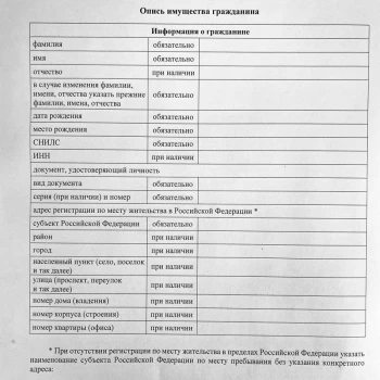 Имеет или не имеет гражданин имущество, опись должна быть составлена. Графы могут быть пустыми с прочерком, в конце подпись и дата.